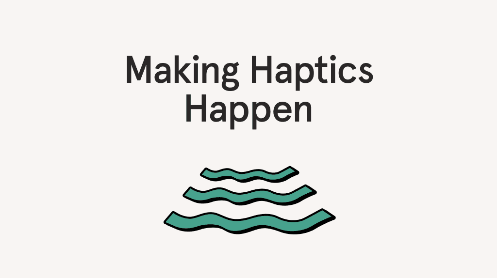 We don't see haptics discussed nearly enough for my taste; I find them to be an underutilized pattern in product design because tools like Figma don't enable designers to mock or prototype haptic patterns. I've found that haptics are underutilized but, for the most part, are easy to demonstrate to engineers and get implemented into a project.